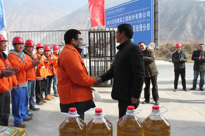 凜冽的寒風(fēng)擋不住送溫暖的腳步,深冬的嚴(yán)寒冷卻不了領(lǐng)導(dǎo)熾熱的關(guān)懷。從1月7日起,由公司領(lǐng)導(dǎo)班子成員帶隊(duì)的6個(gè)慰問(wèn)小組冒著凜冽的寒風(fēng),紛紛下基層,深入施工一線,向春節(jié)期間繼續(xù)奮戰(zhàn)在一線的公司全體職工群眾表示親切慰問(wèn)和忠心感謝,并向大家致以節(jié)日的問(wèn)候。