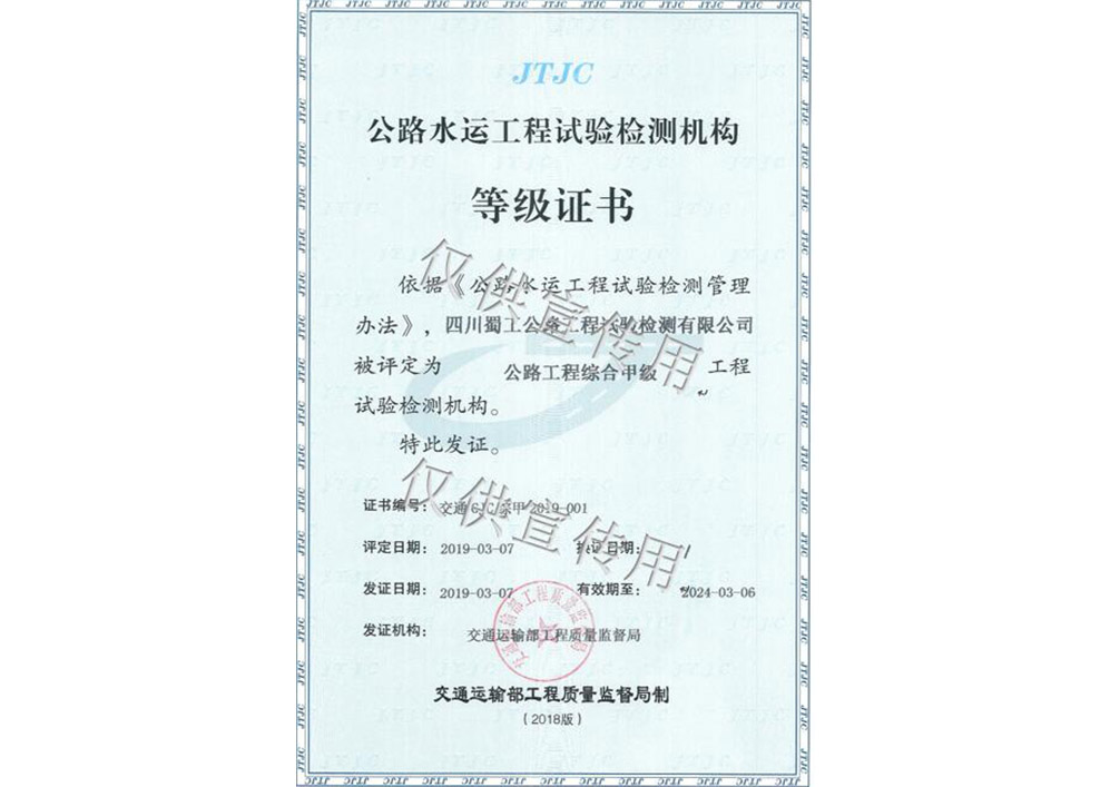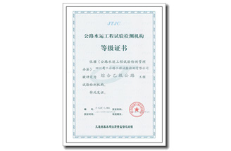 公路水運(yùn)工程試驗(yàn)檢測(cè)機(jī)構(gòu)等級(jí)證書