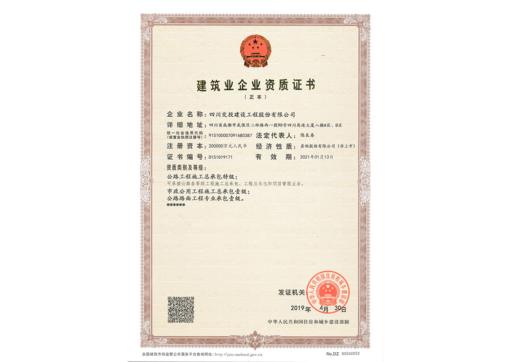 建筑業(yè)企業(yè)資質(zhì)證書(特級(jí))