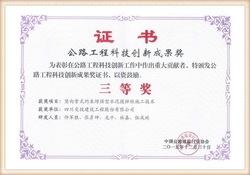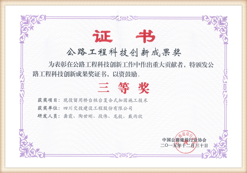 公路工程科技創(chuàng)新成果獎三等獎