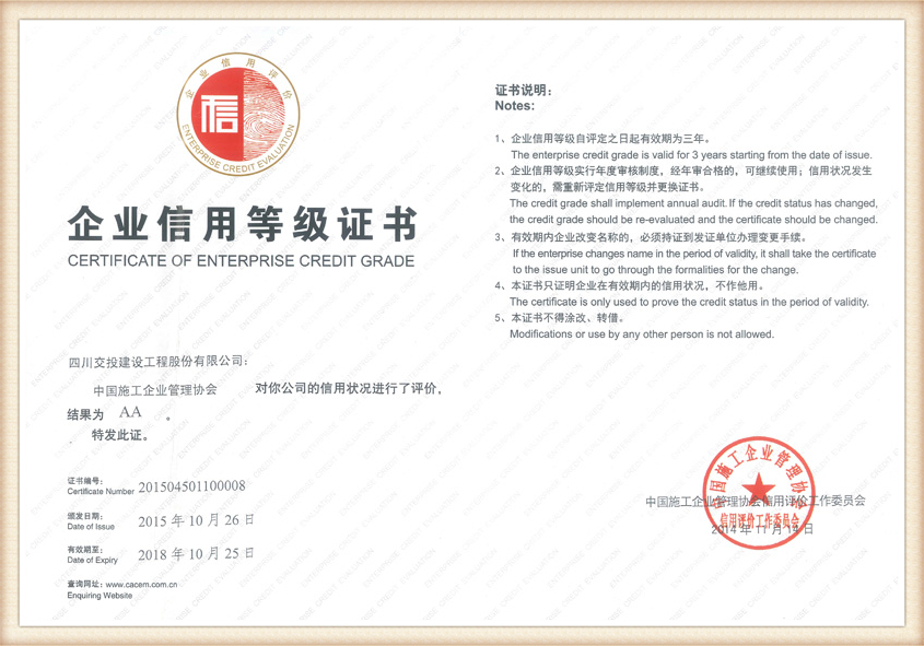企業(yè)信用等級證書