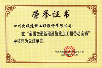 全國交通基礎(chǔ)設(shè)施重點(diǎn)工程勞動競賽先進(jìn)單位
