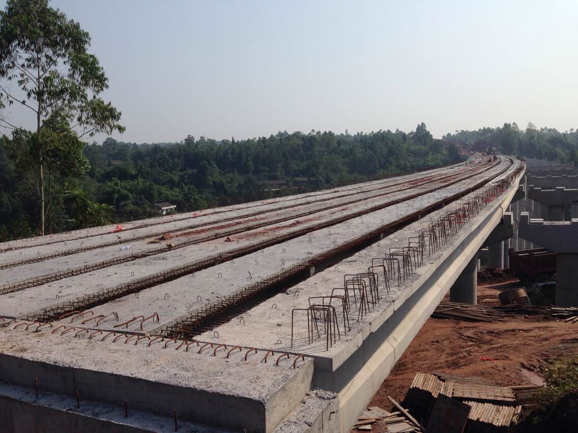 遂廣遂西高速公路是《四川省高速公路網(wǎng)規(guī)劃(2008-2030)》調(diào)整方案中新增的2條重要聯(lián)絡(luò)線,對(duì)完善四川省高速公路網(wǎng)絡(luò),提高路網(wǎng)的運(yùn)輸效率具有重要意義。根據(jù)遂廣遂西公司2014年第三季度“路面綠化齊開(kāi)弓,路基橋梁半幅通”勞動(dòng)競(jìng)賽要求,在2014年9月底完成所有主線半幅梁板預(yù)制安裝和橫隔板及濕接縫施工。路面工程分公司三個(gè)路基參建項(xiàng)目積極響應(yīng),本著對(duì)業(yè)主和公司高度負(fù)責(zé)的精神,針對(duì)工地實(shí)際情況,群策群力,倒排工期,制定了詳細(xì)的施工計(jì)劃;并且,精心組織,加大投入,不斷優(yōu)化各個(gè)橋梁架設(shè)的施工方案,施工機(jī)械和人員做到統(tǒng)籌安排、統(tǒng)一調(diào)配、合理使用,確保按時(shí)完成施工目標(biāo)任務(wù)。