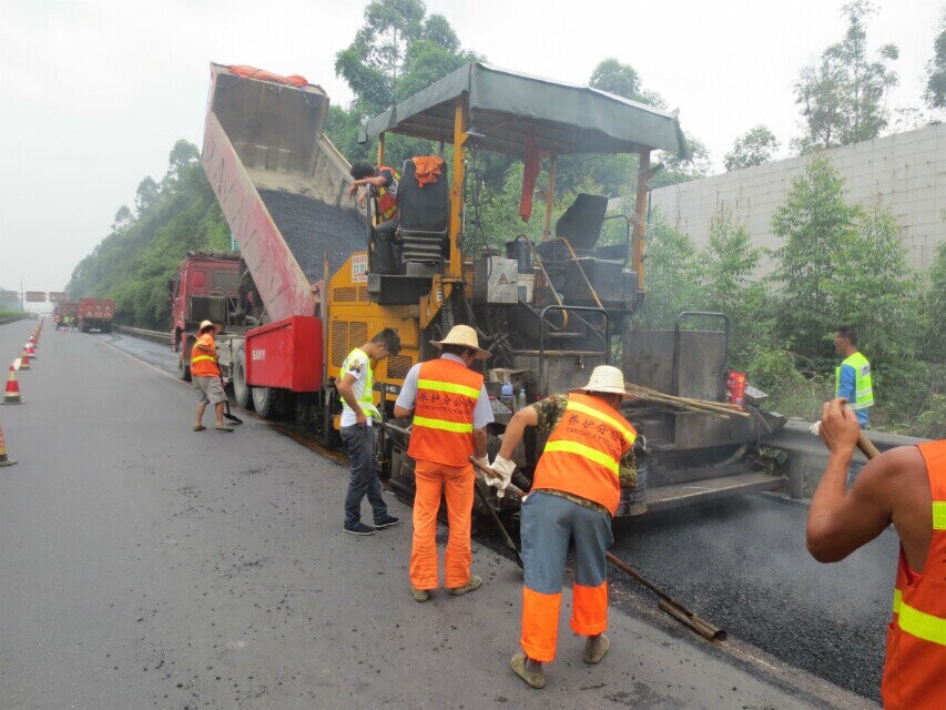 2014年9月9日,養(yǎng)護(hù)分公司重點(diǎn)施工項(xiàng)目成樂高速公路樂成方向罩面維修工程正式開工。該罩面工程分為K85+220—K66+692段、K42+300—K39+000段共計21.8km,計劃11月20日完工。為順利完成任務(wù),養(yǎng)護(hù)分公司第二片區(qū)項(xiàng)目部配備了充足的技術(shù)人員和機(jī)械設(shè)備,采取有效安全防范措施,保質(zhì)保量完成罩面維修工程。
