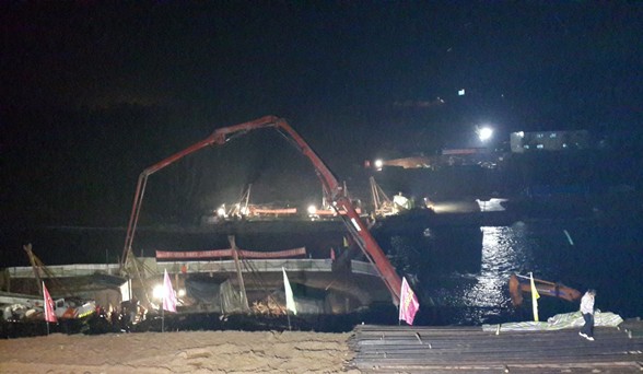 交投建設(shè)公司為保證恩陽(yáng)河大橋開(kāi)工以來(lái)第一根2-16#樁基澆筑工作能夠順利完成,項(xiàng)目主要管理人員冒雨到施工現(xiàn)場(chǎng)指導(dǎo)施工作業(yè),并在澆筑樁基之前做好技術(shù)交底,嚴(yán)格把控好每一個(gè)安全質(zhì)量關(guān)。截止11月8日,公司巴中恩陽(yáng)項(xiàng)目完成恩陽(yáng)河大橋首根2-16#樁基混凝土澆筑。設(shè)計(jì)樁長(zhǎng)21m,直徑2m,混凝土采用商品混凝土,設(shè)計(jì)C30混凝土方量為66m3,罐車(chē)6臺(tái),天泵1臺(tái),吊車(chē)2臺(tái),鉆機(jī)1臺(tái)進(jìn)行施工。
