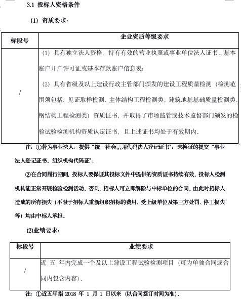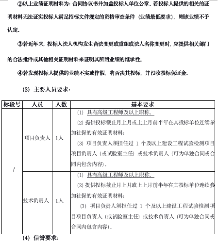3.5 特殊資格要求:投標(biāo)人為招標(biāo)人資信庫(kù)成員(試驗(yàn)檢測(cè)類),若為聯(lián)合體投標(biāo),則聯(lián)合體牽頭人和聯(lián)合體成員須為招標(biāo)人資信庫(kù)成員。