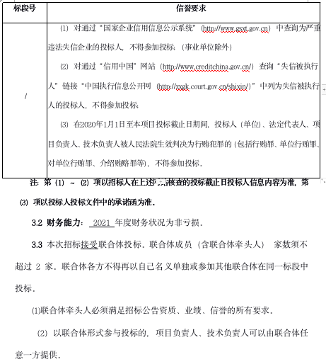 注:投標(biāo)人無需提供證明材料,由招標(biāo)人自行核查。