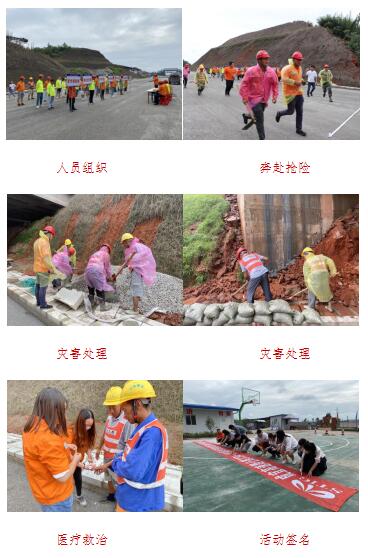 一場與洪水和暴雨的搏斗在演練現(xiàn)場全面展開,各應(yīng)急救援小組按照防洪度汛防地質(zhì)災(zāi)害應(yīng)急預(yù)案開展工作,應(yīng)急搶險現(xiàn)場各小組互聯(lián)互動、搶險工作有條不紊的進(jìn)行,使險情逐步得到控制,最后全體演練人員在“安全發(fā)展 生命至上-暨2020年成宜高速公路ZCB4-LM1項目部應(yīng)急演練”條幅上簽字。