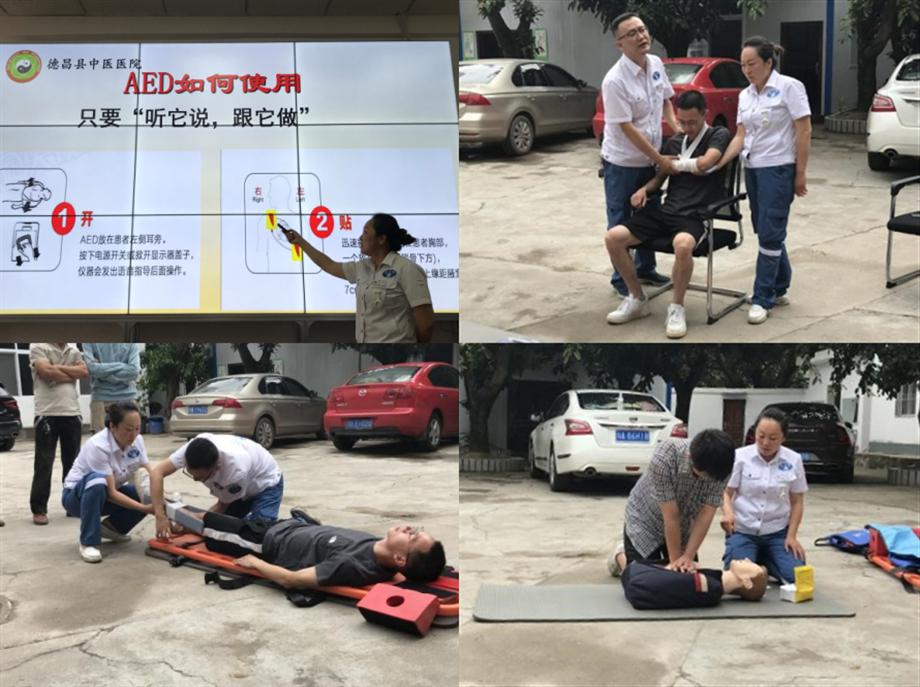 現(xiàn)場(chǎng)急診及急救處理是事故發(fā)生后最重要的一步救助措施。為了提高大家的理論知識(shí),項(xiàng)目部邀請(qǐng)了德昌縣中醫(yī)醫(yī)院急診科的專(zhuān)家,在演練開(kāi)始前向項(xiàng)目職工和協(xié)作隊(duì)伍人員普及急救知識(shí)和技術(shù),力求學(xué)以致用。醫(yī)院急診科護(hù)士長(zhǎng)劉春燕首先為大家講解了心肺復(fù)蘇(CPR)的相關(guān)知識(shí),“黃金4分鐘”“按壓深度5-6厘米”“按壓頻率100-120次/分”……在她的講解與示范下,大家學(xué)到了如何對(duì)心臟、呼吸驟停傷者急救的知識(shí)和技術(shù)。隨后急診科主任鐘光俊就創(chuàng)傷的現(xiàn)場(chǎng)救護(hù)、心臟驟停的處置措施,進(jìn)行現(xiàn)場(chǎng)操作講解和指導(dǎo)。
