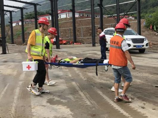 學(xué)習(xí)結(jié)束后,項(xiàng)目部立即組織職工和協(xié)作隊(duì)伍人員進(jìn)行了一場(chǎng)高空墜落急救演練。參加現(xiàn)場(chǎng)演練人員共分為醫(yī)療救護(hù)組、安全保衛(wèi)組、物資保障組、后勤保障組,演練模擬了一名施工人員從鋼筋加工廠橫梁上跌落地面的情景?,F(xiàn)場(chǎng)指揮員立即啟動(dòng)安全應(yīng)急救援組織;安全保衛(wèi)組立即疏散人員,拉警戒帶,對(duì)事故現(xiàn)場(chǎng)進(jìn)行有效隔離;醫(yī)療救護(hù)組帶急救藥箱等器材迅速進(jìn)入演練事發(fā)地點(diǎn),根據(jù)傷者情況,對(duì)傷員進(jìn)行有效緊急醫(yī)療處理;物資保障組清除道路障礙,保證救援通道暢通;后勤保障組指揮交通,派人派車(chē)去便道路口接應(yīng)救護(hù)車(chē)至事故現(xiàn)場(chǎng)。整個(gè)過(guò)程中,各組人員分工明確,救援井然有序,最大限度挽救了傷者的生命。