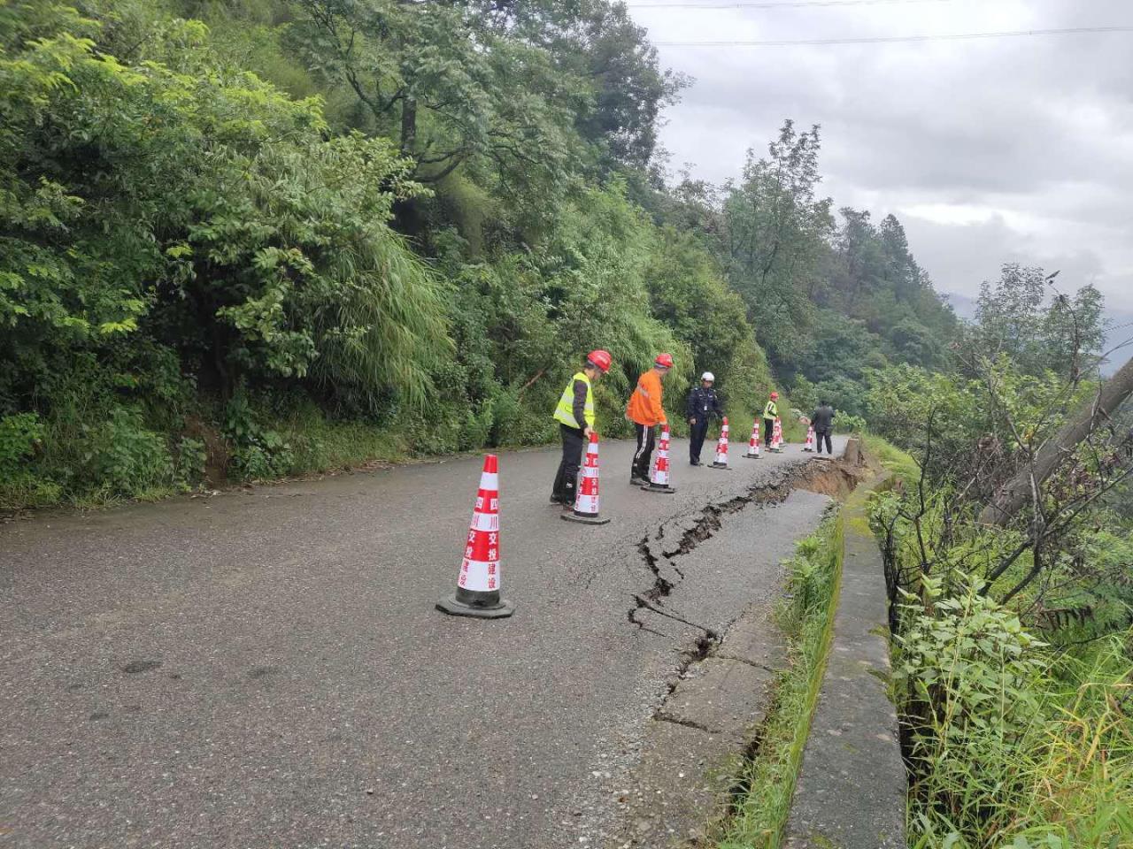 德會高速TJ1項目經(jīng)理強調(diào)搶險過程中一是在確保道路邊坡安全的情況下,將山體垮塌土石方及淤泥迅速進行清除,二是在搶險點位,請設(shè)置觀察哨,密切關(guān)注道路邊坡一定要確保人員設(shè)備安全的情況開展搶險工作。三是在道路山坡垮塌處道路沉陷處設(shè)置了警示標(biāo)志和警戒線,防止社會車輛進入沉陷區(qū),四是與上游水庫及氣象部門保持聯(lián)系,在保證人員設(shè)備安全的前提下疏通河道,要保障當(dāng)?shù)卮迕竦纳敭a(chǎn)安全和臨時出行。
