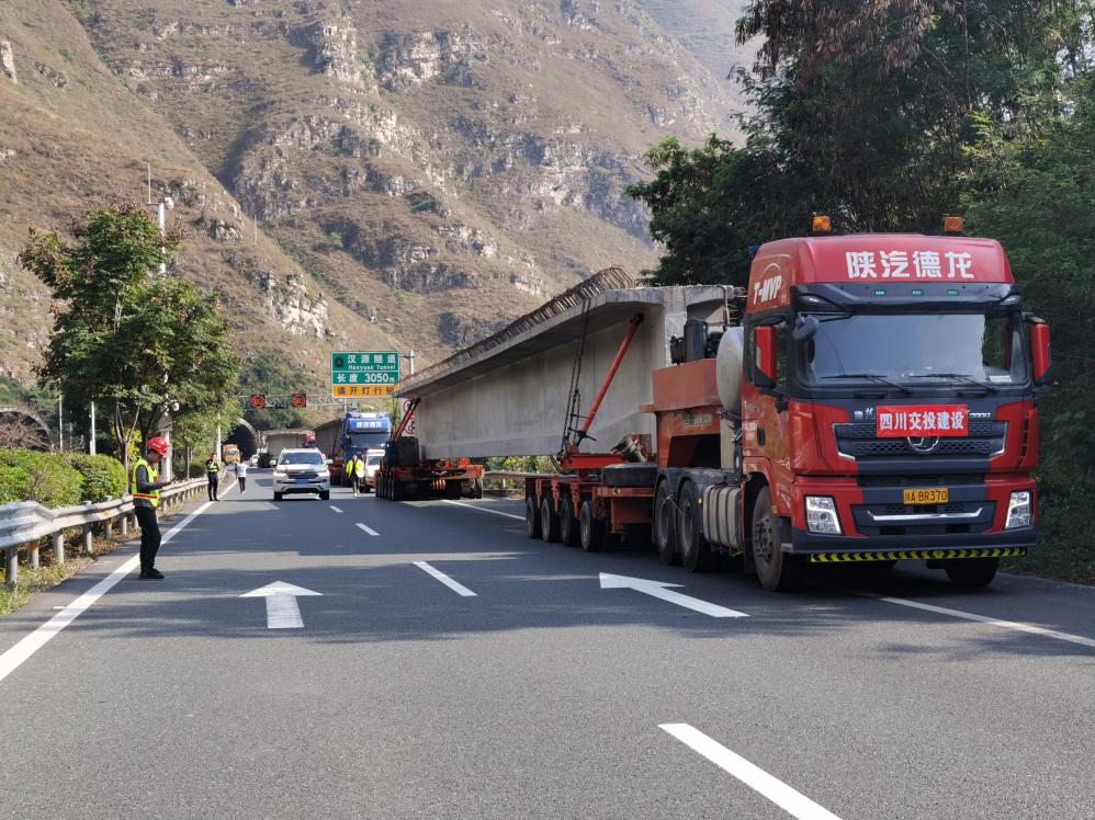 梁板運(yùn)輸,勢必會影響交通流量極大的雅西高速的正常通行,為此,四川交投建設(shè)養(yǎng)護(hù)項(xiàng)目部提前10天便已會同一路多方通過現(xiàn)場道路勘測、分析行車路況數(shù)據(jù)等方式商討出《梁板運(yùn)輸方案》并制定出交通道路臨時管制措施。