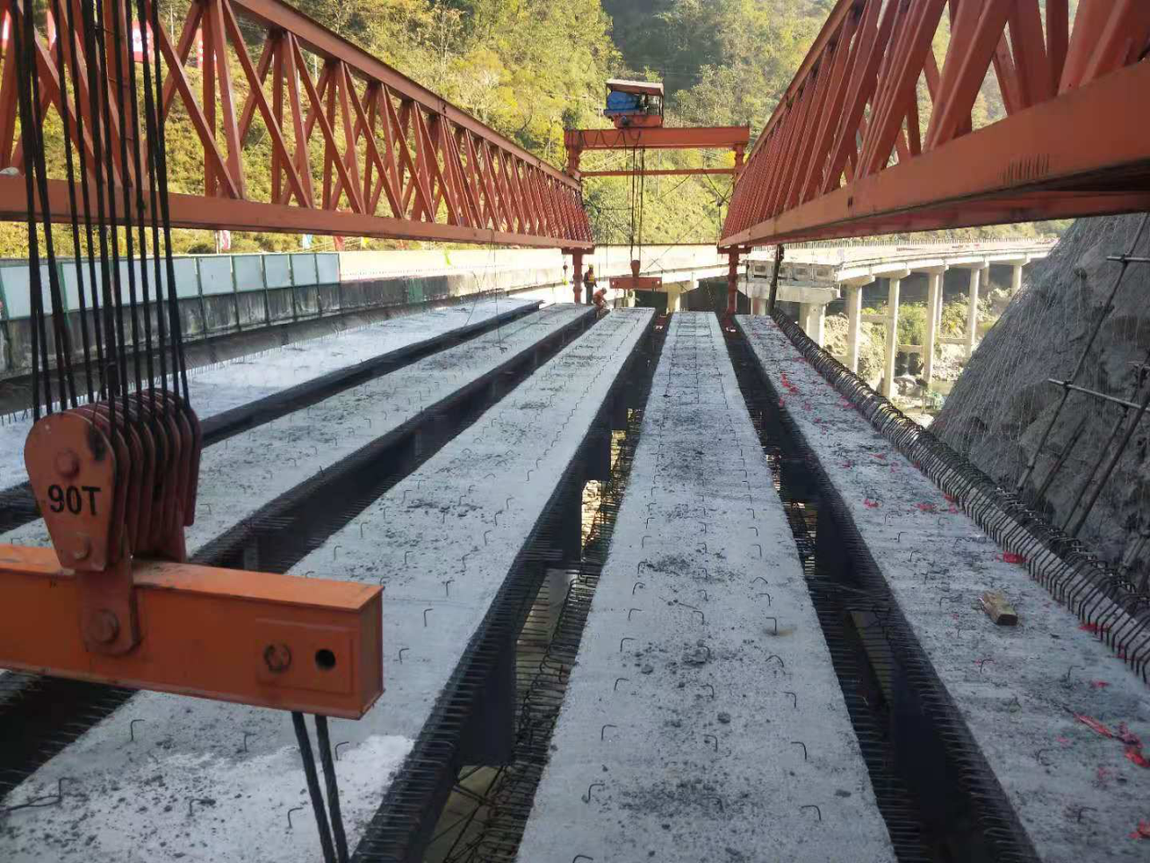 11月15日上午,雅西高速姚河壩特大橋恢復(fù)重建施工現(xiàn)場(chǎng),首跨梁板在機(jī)械轟鳴聲中緩慢下落對(duì)位完成,第一批5片40米、重達(dá)120T的T梁全部吊裝架設(shè)成功,標(biāo)志著姚河壩災(zāi)后重建工程邁出了關(guān)鍵一步。