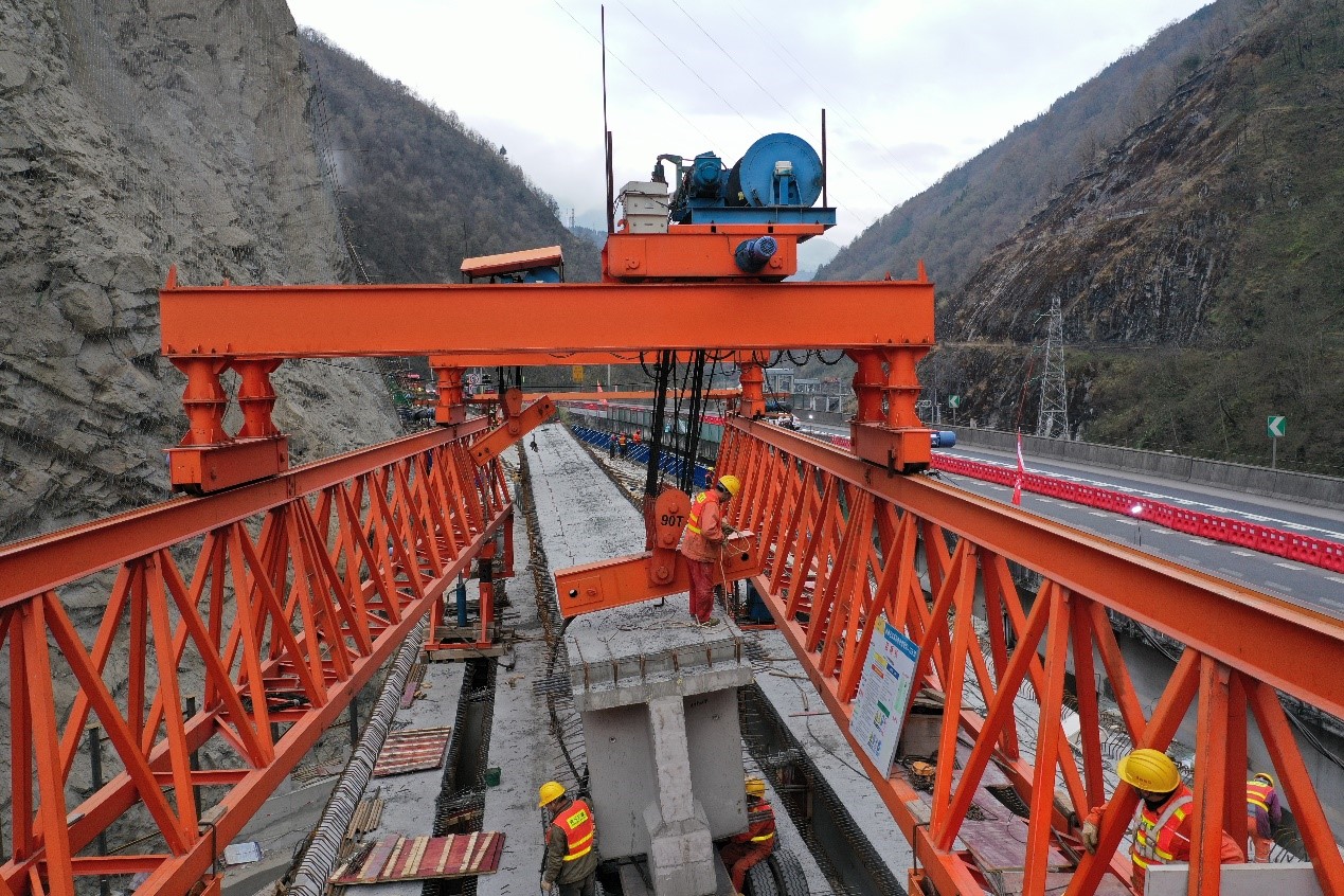 雅西高速姚河壩受損橋梁從首跨到3跨15片梁板全部架設(shè)完成,共歷時(shí)14天。目前,四川交投建設(shè)正全力進(jìn)行后續(xù)橋面鋪裝及附屬工程施工,力爭元旦前恢復(fù)雅西高速斷道處的正常通行能力。