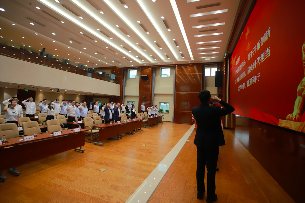 在宣講活動中,來自分(子)公司的五位宣講人緊扣主題,從身邊人、身邊事出發(fā),結(jié)合自己的所思所悟,通過視頻、音頻、圖片、文字等多種形式聲情并茂地講述了身邊“十佳員工”的奮斗故事,闡述了他們對青春的注解,對奮斗的感悟,對筑路行業(yè)的熱愛。通過一個個生動感人的故事,使現(xiàn)場青年代表感受到了交建榜眼的奮進(jìn)之心,展現(xiàn)出了交建青年的勇氣與實(shí)力、責(zé)任與擔(dān)當(dāng)。在場青年團(tuán)員紛紛宣誓,會從榜樣的先進(jìn)事跡中汲取力量,堅(jiān)定信念,用實(shí)際行動揮灑青春熱血,點(diǎn)燃奮斗夢想。